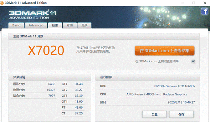 这款笔记本在性能模式下在Extreme的标准下,直接拿到了X6756的超强分值,当然GTX 1660 Ti 也是强劲能力的来源。