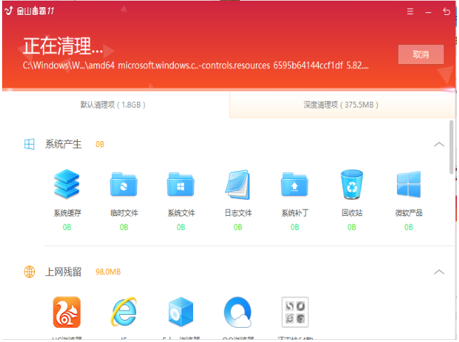 1.下载并安装金山毒霸,当安装完成后双击运行此软件,点击清除垃圾选项,此软件将自动检测你电脑上现有的垃圾文件。