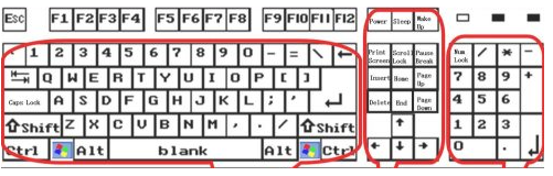 2.左侧的区域为主键盘区,中部叫控制键区,右侧则是数字键盘区。