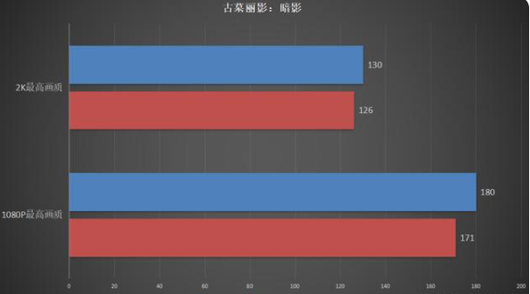 古墓丽影中,6700 XT稍有落后,不过就那么几帧的差距,换算成比例之后大约就是3%-5%的差别。在1080P中帧数都很高,这差一点的帧数,都不影响游戏的流畅运行。