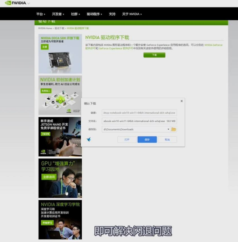 3、在搜索结果中,找到下载按钮,点击它,下载后安装驱动,即可解决闪退问题。