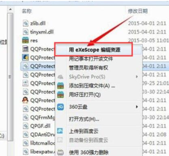 2、接着右键选中dll文件,选择【用exescope编辑资源】。