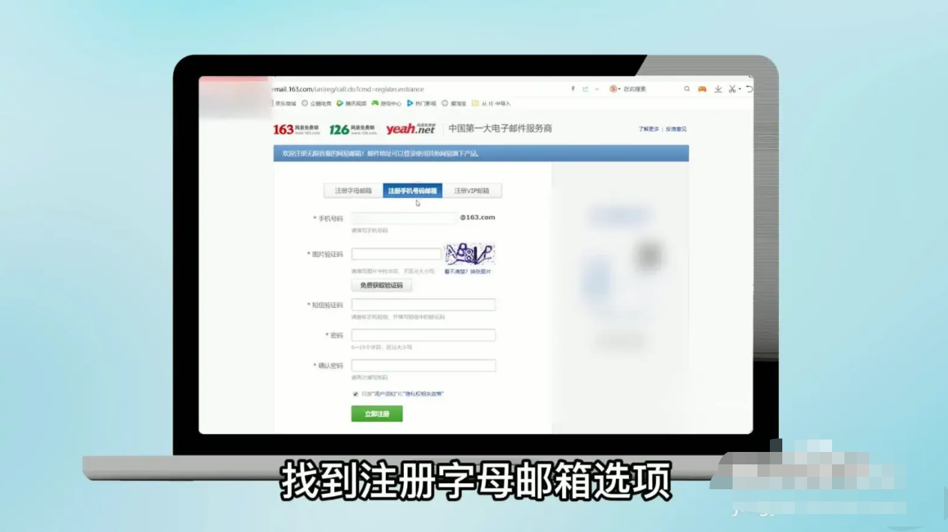 2、点击注册字母邮箱