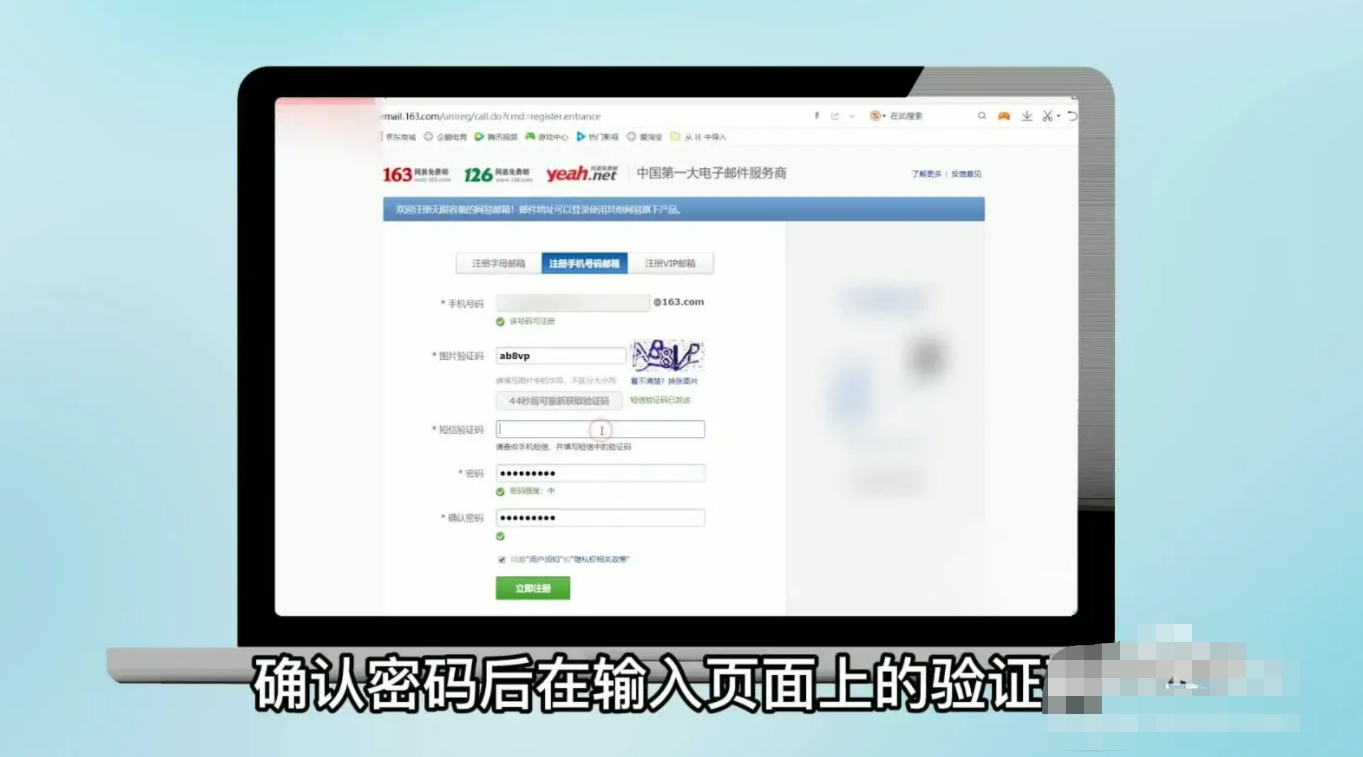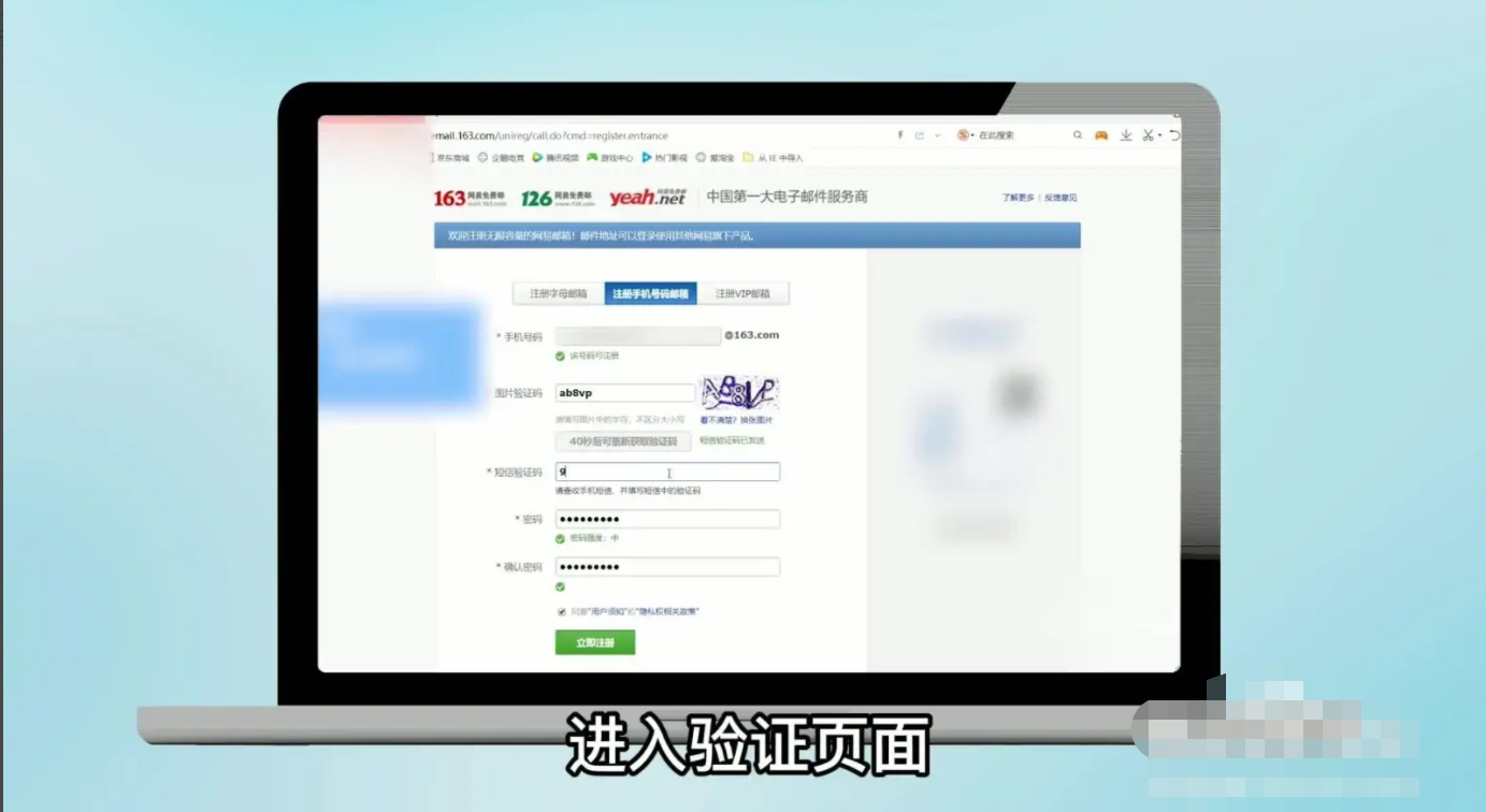 4、进入验证页面,输入验证码,即可成功注册邮箱。