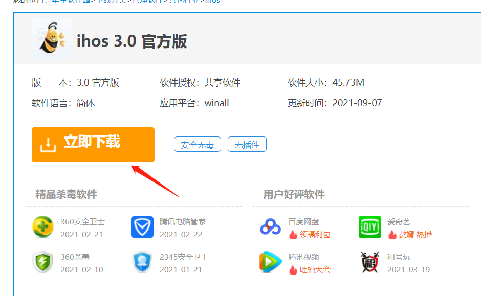 1、百度搜索iHos3.0电脑版,进入下载页面下载软件。