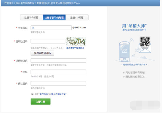 网易邮箱大师支持所有类型的邮箱同时登陆使用,注册比较简单,只需要要跳转到邮箱网页版使用手机账号注册即可,使用比较方便。