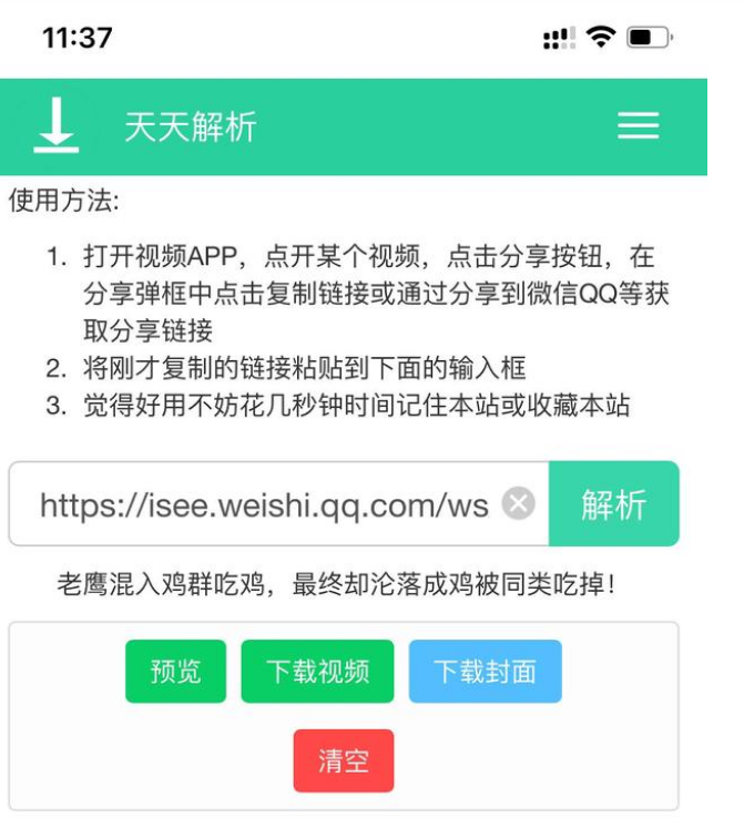 3.把复制好的微视视频链接粘贴进去,点击解析,点击下载视频。