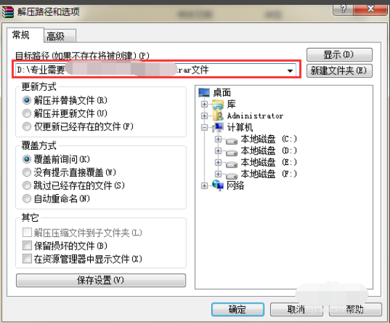 4、都设置好之后,点击确定,然后软件会自动对RAR文件进行解压。