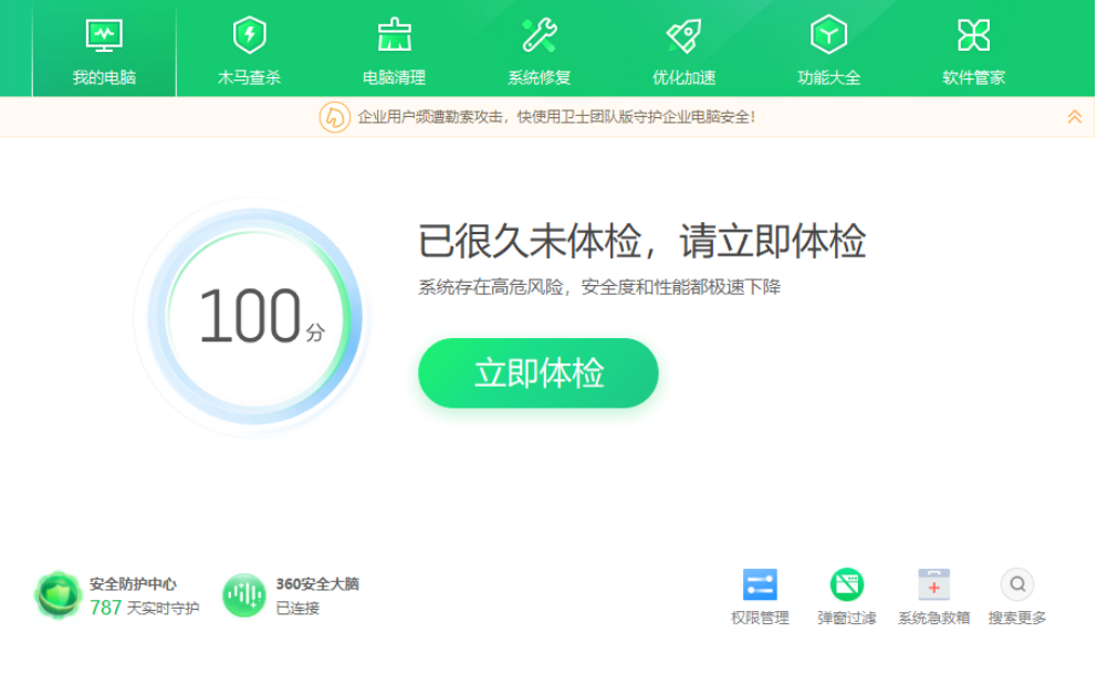 2、360安全卫士正自动检测电脑中的病毒,稍等片刻即可检测完成,如图下所示。