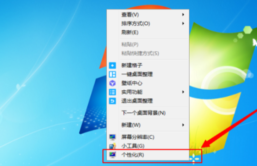 1、点击鼠标右键,选择到个性化。