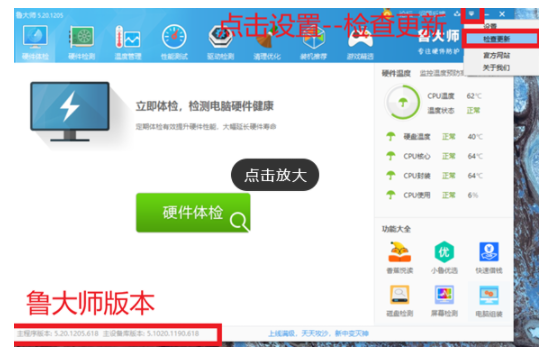 3、等待一会,正常按开机键进入系统,下载并更新鲁大师版本。