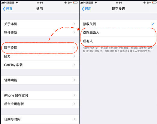 1、【设置】→【通用】→【隔空投送】→选择【所有人】→【隐私】→【定位服务】。