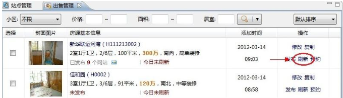 5、点击房源操作区的刷新按钮用于刷新房源信息,将最新信息传递给客户。