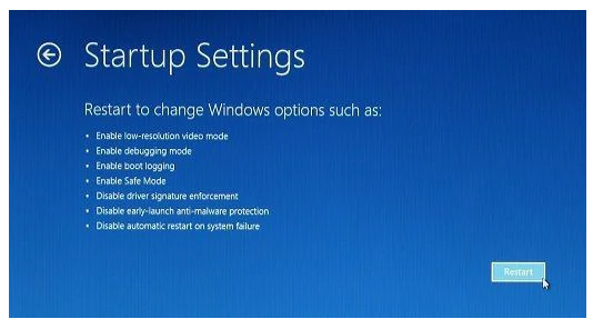 5、在“启动设置”页面中点击“重新启动”。