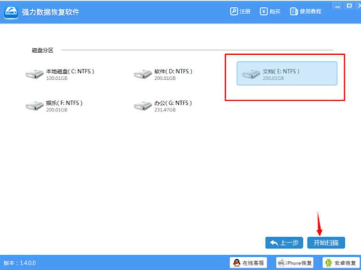 2,,选择原本文件所在的盘,点击“扫描扫描”