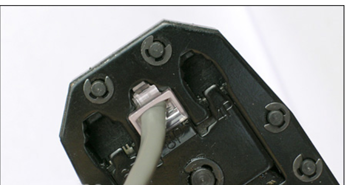 五、把水晶头插入8P的槽内,用力的握紧压线钳即可!