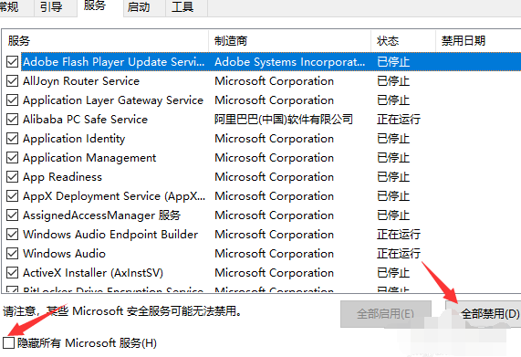 3、服务和启动两个菜单里面,都是全部禁用。
