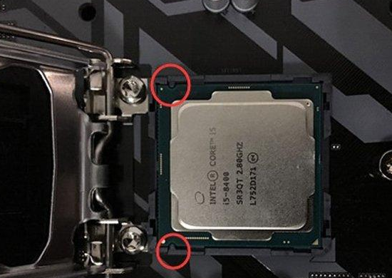 我们将CPU放入主板的CPU插槽中,注意CPU和主板CPU插槽有个防呆缺口,CPU安装反了是放不进去的,如下图所示: