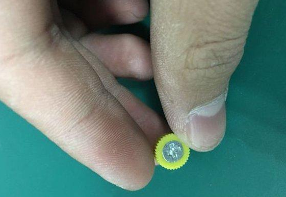 四颗黑色塑料钉子分别插入进行固定,注意需要完全插入,如下图所示。