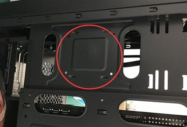 找到机箱上安装固态硬盘的孔位,如下图所示: