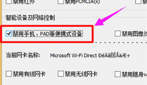 7,接下来勾选“禁用手机、PAD等便携式设备”项,就可以将手机设置给禁用掉。