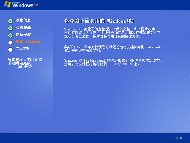 下图为重启电脑后原版windows XP系统正在安装的界面: