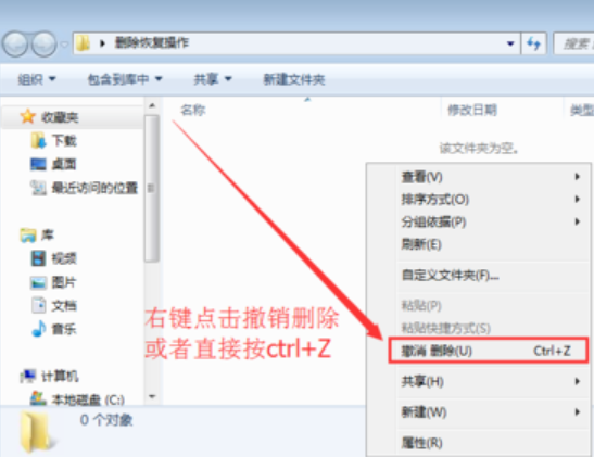 然后鼠标右键,选择撤销删除或者直接按快捷Ctrl+Z即可