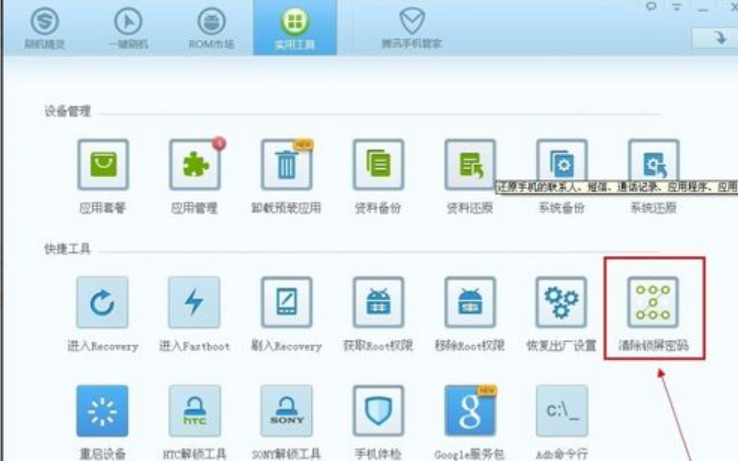 2,解除手机解锁图案需要获取root权限,如果没有获取的可以在这里面点击获取root权限的选项,获取了直接点击清除锁屏密码。