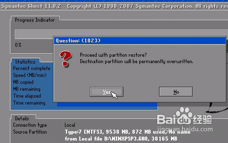 11、着会弹出询问是否要还原到这个分区的确认对话框,选择“Yes”即: