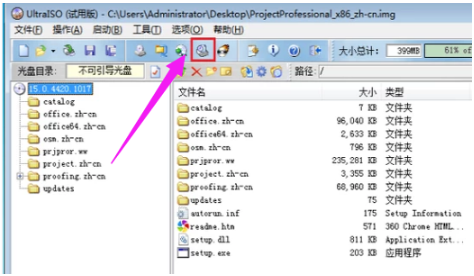 3、也可以将img文件加载到虚拟光驱,点击红色方框中的按钮,选择img文件加载到虚拟光驱。然后直接点击应用程序进行运行