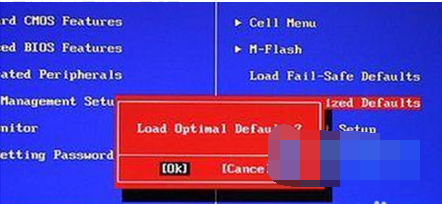 2、在BIOS界面中,将光标移动到“Load Optimized Default”项,并按回车键,如下图所示: