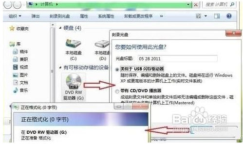 1、如果选择“类似于USB闪存驱动器”,单击“下一步”,系统会对空白光盘进行格式化(如图1)。