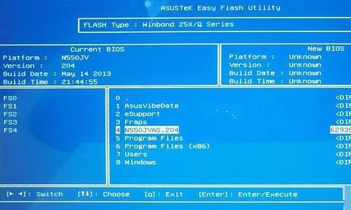 2、然后使用方向键选择分区,接着回车进入分区目录选择BIOS文件。