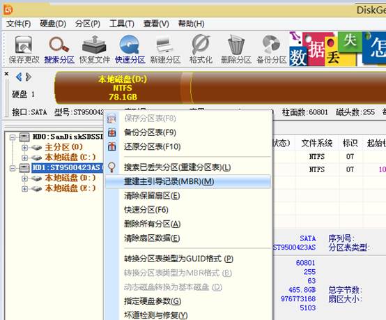 2、WINPE环境下运行DiskGenius,进入DiskGenius软件界面后,点击硬盘,右键选择重建主引导记录(MBR);