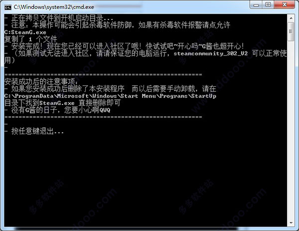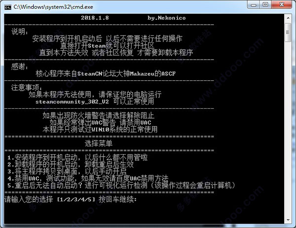 3、输入1点击回车,软件将会自启,以后使用无需在重复打开,可以直接进入社区,如果你不想设置自启,你也可以输入其他命令。