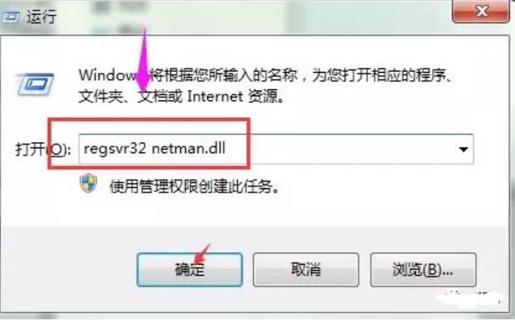 使用快捷键“Win+R”打开运行,在运行窗口中输入“regsvr32 netshell.dll”