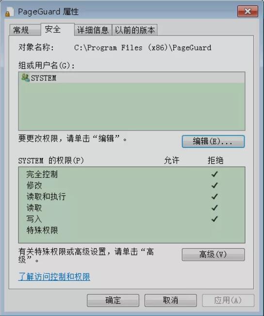 2、右键该文件夹“属性”打开如下图所示的操作界面选择上面的选项卡“安全”,鼠标定位到"SYSTEM“用户组在点击”高级“;