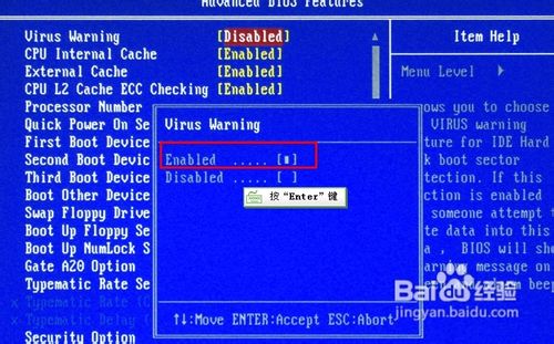 操作方法:以Virus Warning:病毒报警选项设置为例。
