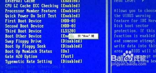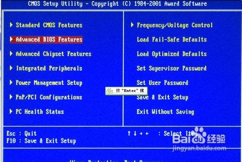 在BOIS界面中,方向键选择,回车键确定,ESC键返回。