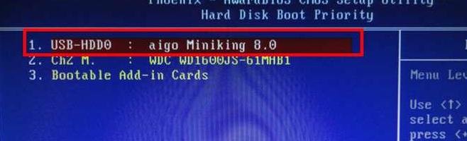 设置USB为第一启动项:找到“Hard Disk Boot Priority”,按“enter”进入进行设置,通过Page up和Page Down调整USB到第一项,然后回来esc退出定位到First Boot Device,通过Page up和Page Down调整让First Boot Device后面括号显示“usb-xx”。