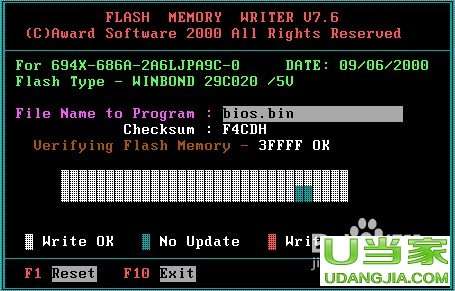10、在当前命令提示符下键入命令:UpdateBios,并按下回车,即可进入BIOS更新程序,显示器上出现如下图画面: