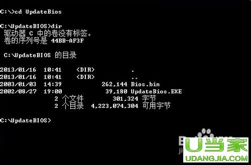 9、然后会进入到命令提示符状态,键入如下图所示的命令将当前目录切换止“c:\UpdateBios”下。