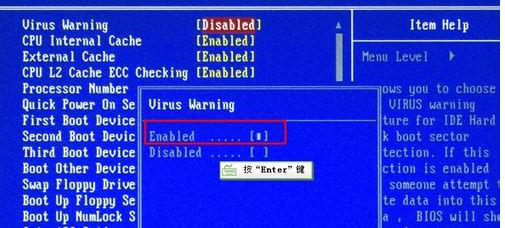 操作方法:以Virus Warning:病毒报警选项设置为例。