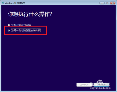 接下来,我们选择“为另外一台电脑创建安装介质”。