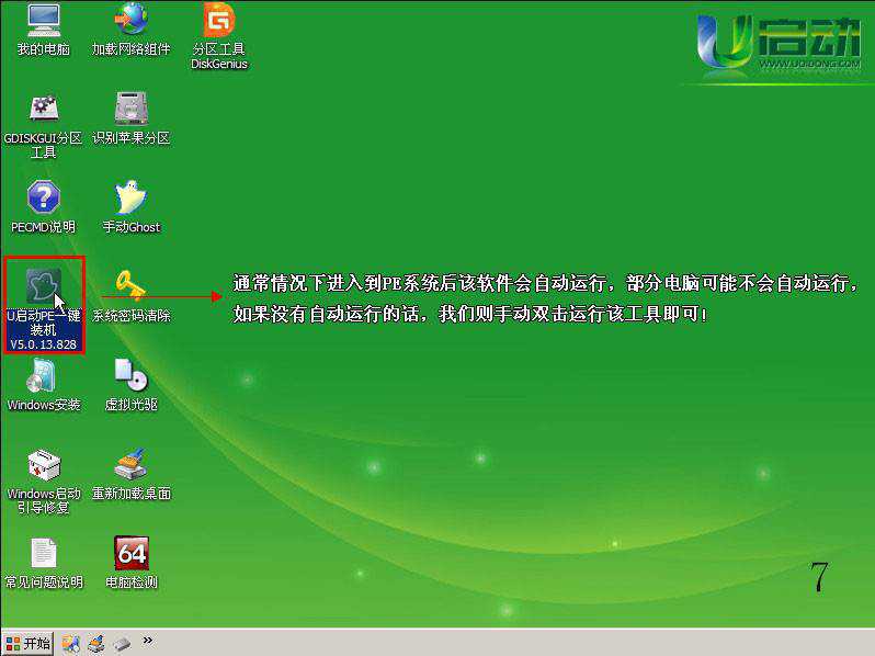 9.进入软件主界面,找到桌面的“u启动pe一键装机软件”,然后双击。