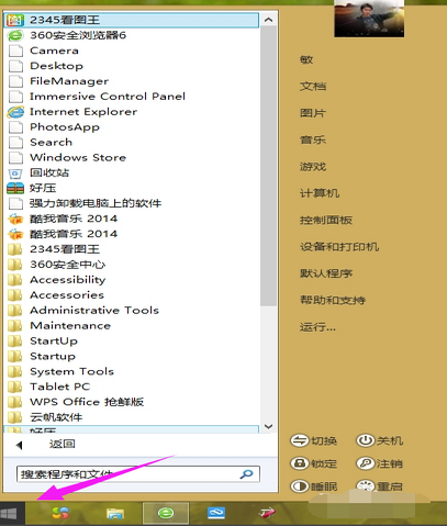 6、接下来我们点击“注销”重启电脑我们会发现,开始菜单已经变成win7开始菜单风格了。(如果想切换回WIN8的话直接卸载掉Win8优化大师软件)