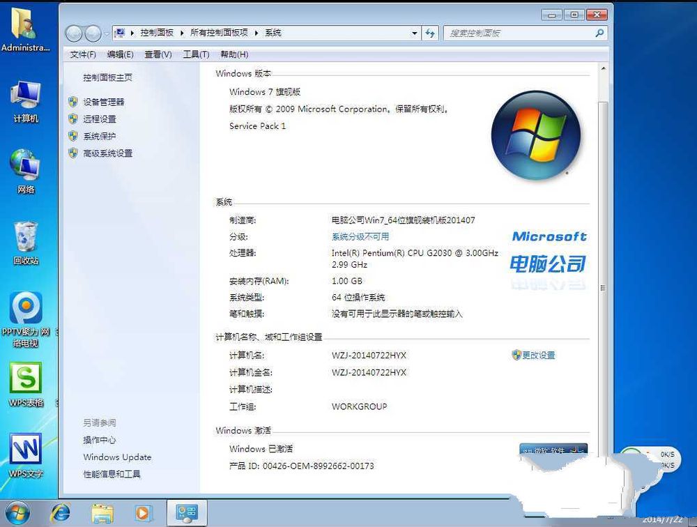 7.当出现如下界面时,就说明win7 64位操作系统安装并激活完成了。如图7所示:
