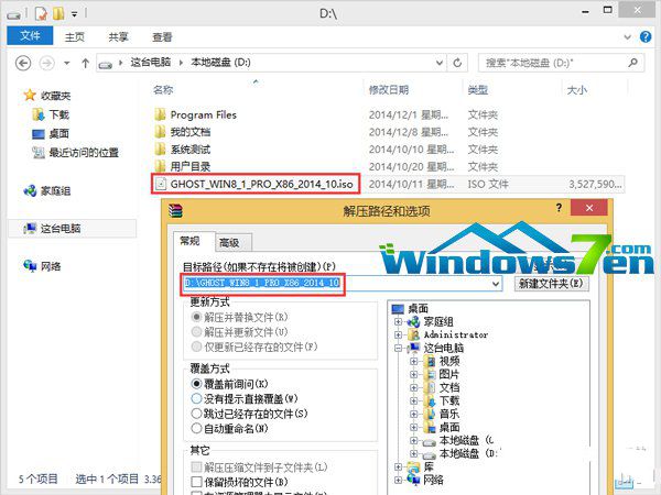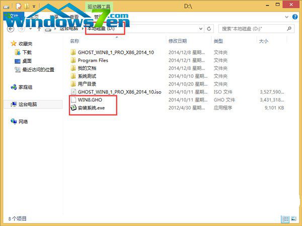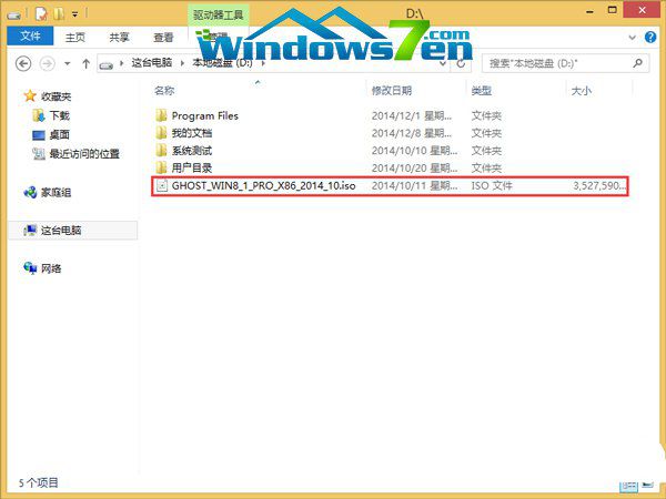 1、首先下载Ghost Win8系统镜像“GHOST_WIN8_1_PRO_X86_2014_10.iso”到本地硬盘上(这里下载在D盘上);