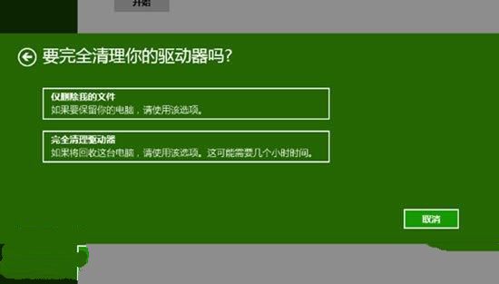 如果选择“仅删除我的文件”,这个选项只是简单的格式化分区,初始化过程只需很少的时间(10分钟左右)。如果打算把电脑转让给他人,推荐选择第二个选项,这样恢复过程中会首先擦除分区以使分区中原有的文件难以再被恢复,这样需要的时间会比较长。