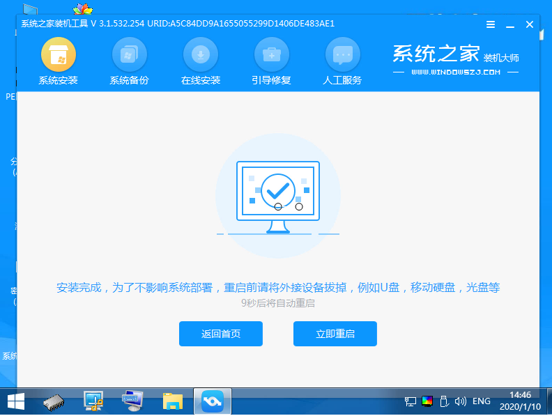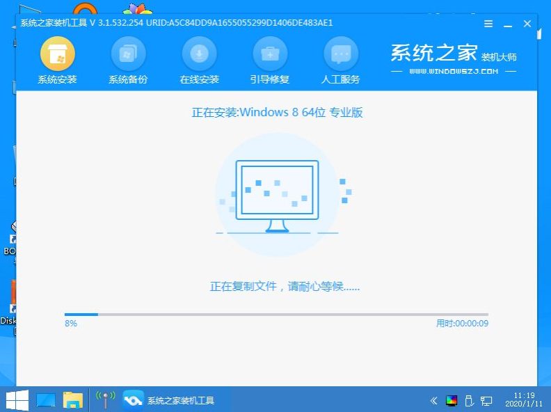 7.进入系统之家PE系统后,win8系统自动安装,耐心等待重启。
